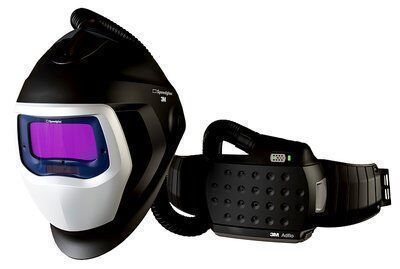 Speedglas laskap 9100 Air met Adflo motoraangedreven ademhalingssysteem en 3M™ Speedglas™ Lasfilters 9100. Variabele donkere kleuren 5, 8, 9-13 voor de meeste booglastoepassingen